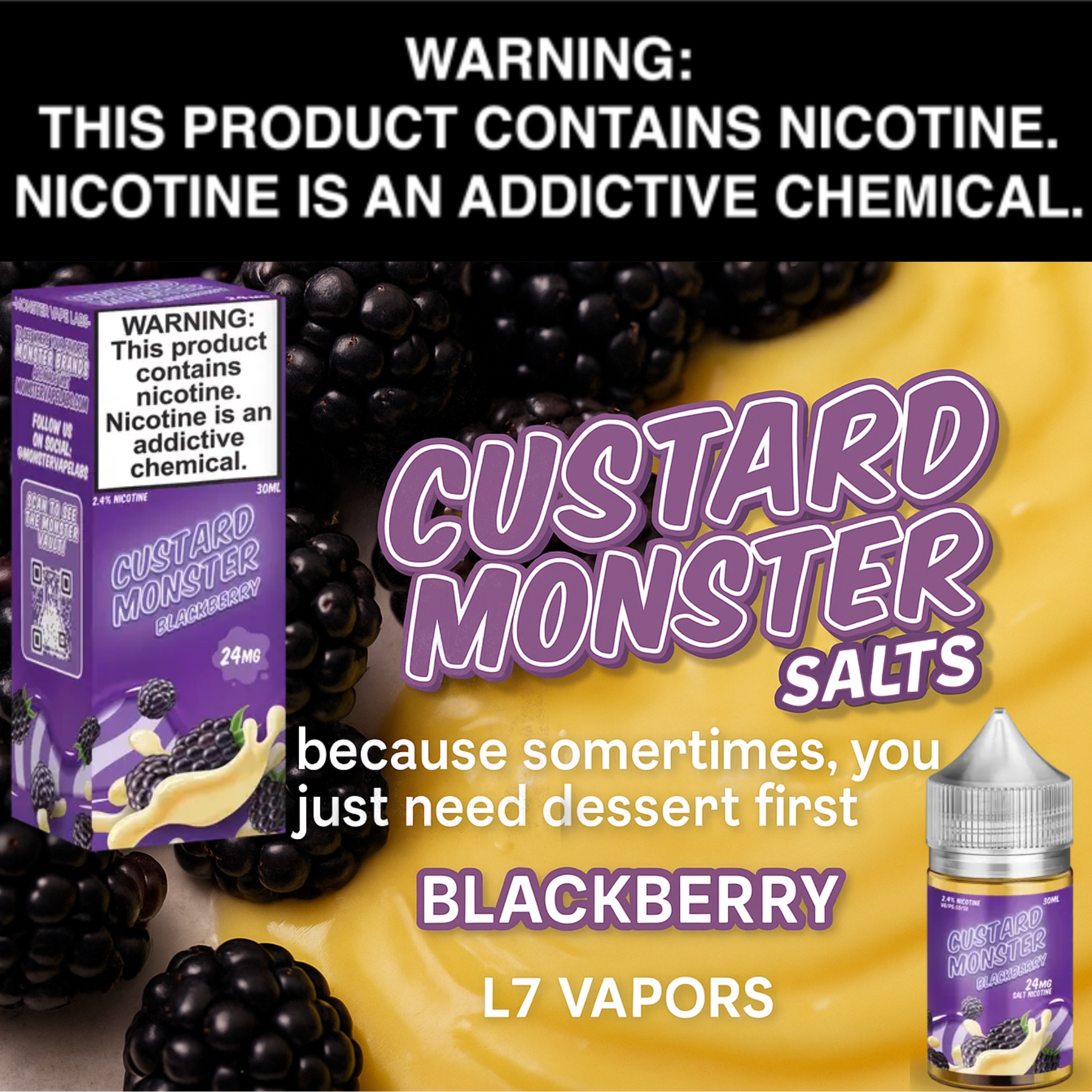 • Berry Meets Cream: The rich custard base balances beautifully with the tart sweetness of blackberries for a dessert-inspired vape.