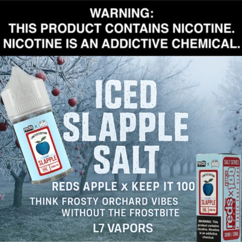 Iced Slapple Salt by Reds Apple x Keep It 100 – Frosty Fruit Bliss in Every Puff.