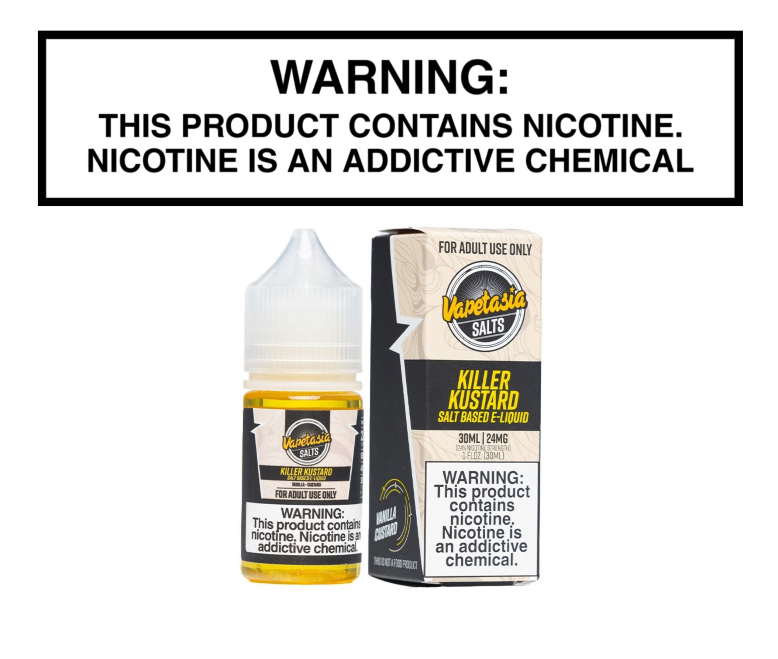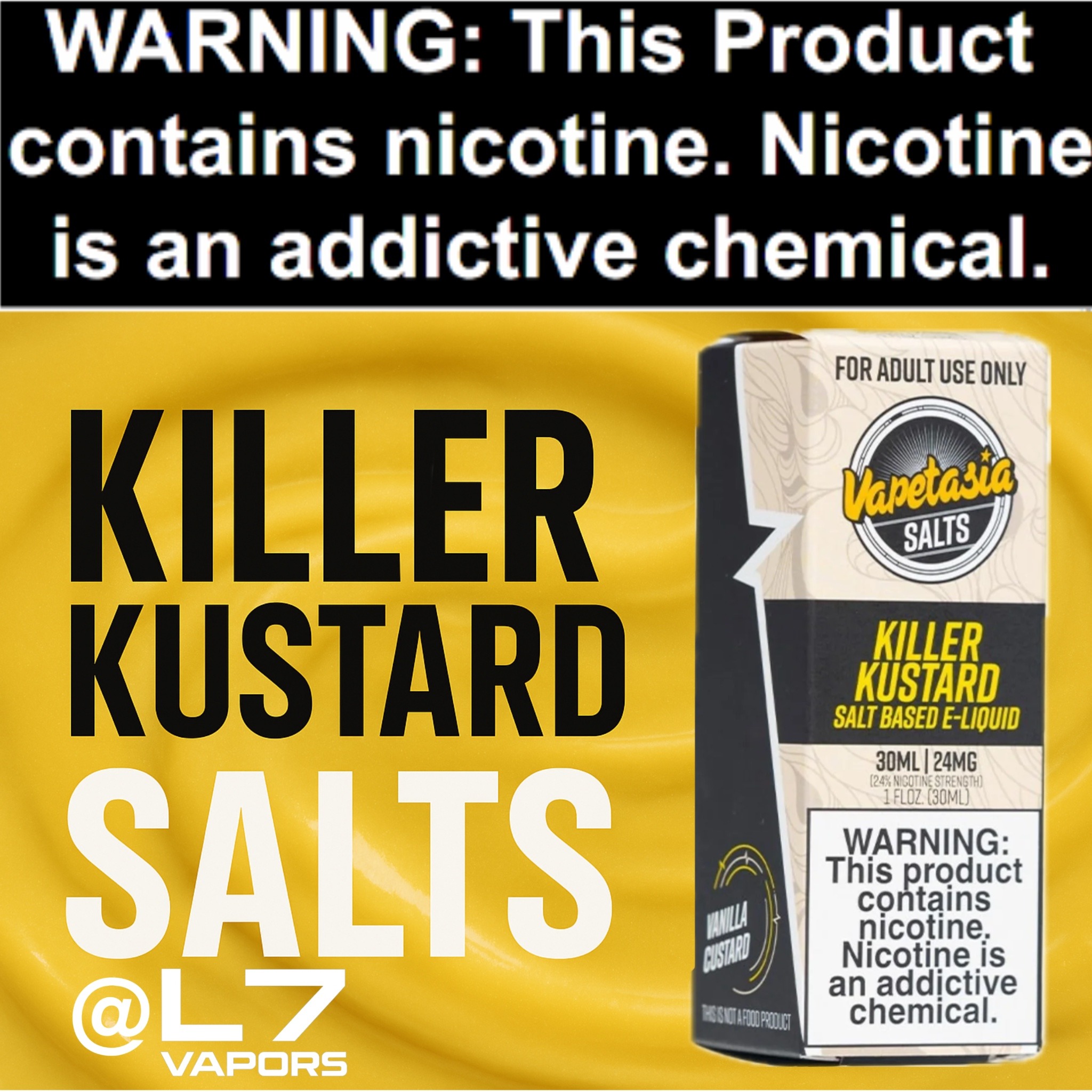 Killer Kustard Salts by Vapetasia – Smooth, Creamy, and Dangerously Addictive.