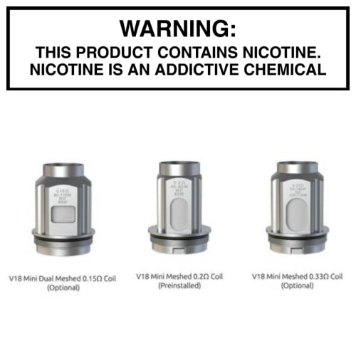 • 3 x SMOK TFV18 Mini Replacement Coils (Choose your preferred resistance.)