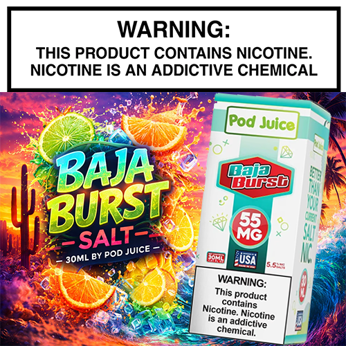 If a tropical soda went on vacation and came back louder, it’d taste like this. Baja Burst Salt blends bright citrus with a tropical twist into a smooth, slightly sweet vape that somehow manages to be refreshing and impossible to put down.