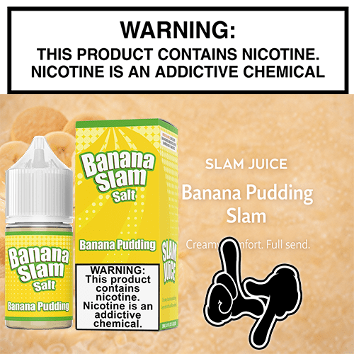 Banana Pudding Slam Salt by Slam Juice is what happens when a Southern dessert classic gets promoted to an all-day vape. Ripe banana, smooth vanilla pudding, and a subtle bakery-style finish come together in a flavor that’s rich, creamy, and unapologetically comforting—like grandma’s recipe, but without the casserole dish judgment.