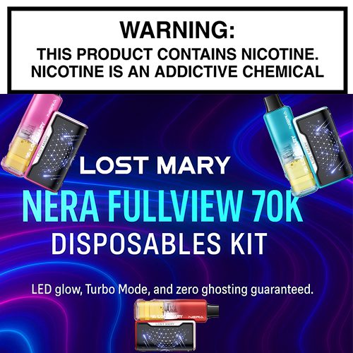 Ready to commit to a vape that goes the distance and doesn’t ghost you halfway through the day? Meet the Lost Mary Nera Fullview 70K Kit — the long-lasting, LED-flexing, puff powerhouse you didn’t know you needed until now.