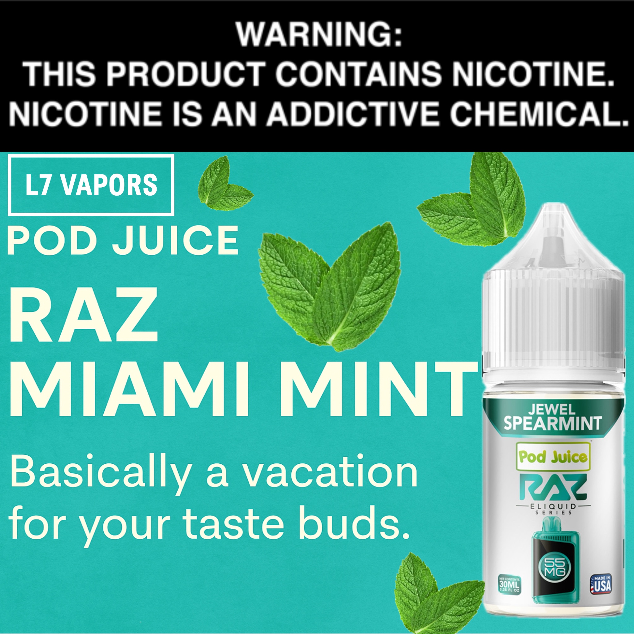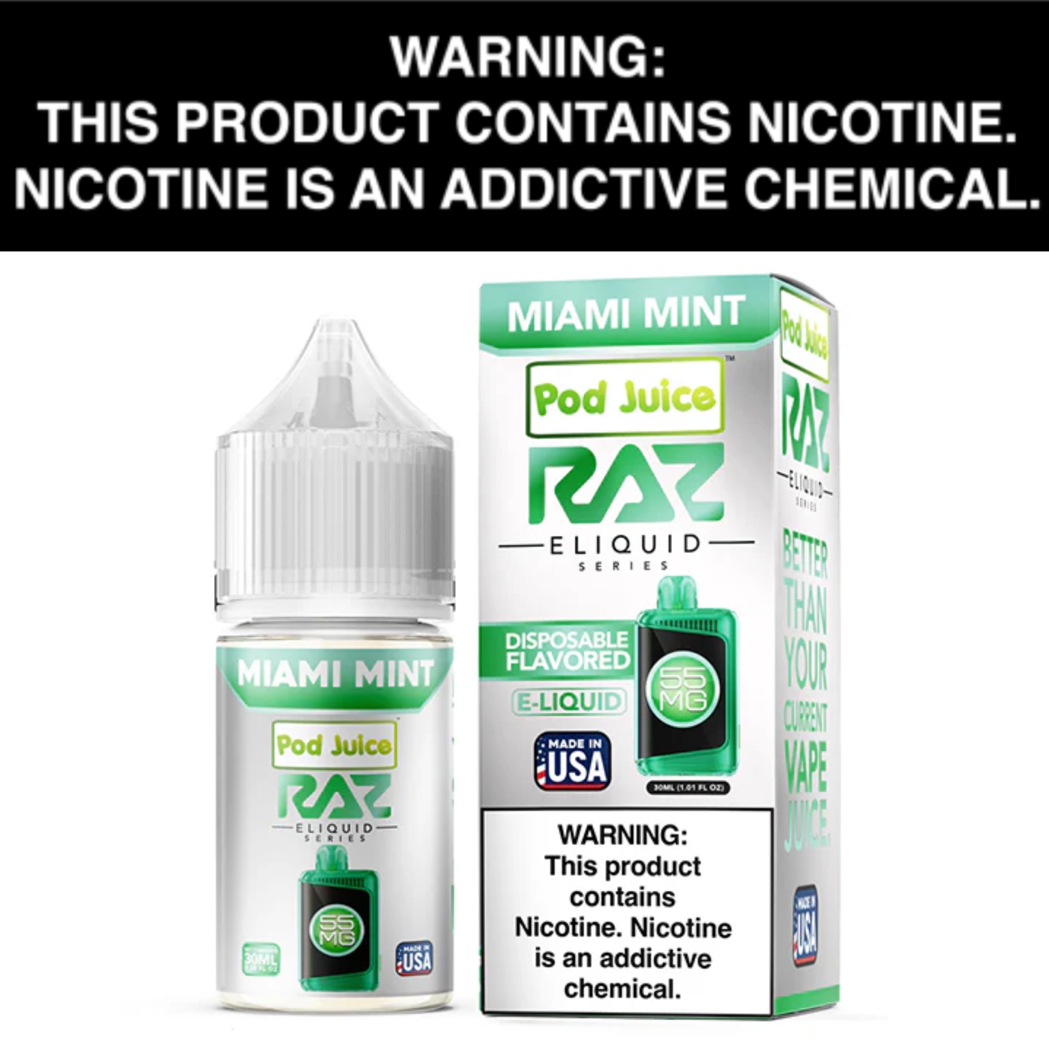 - Authentic RAZ Disposable Taste – Straight from the Miami Mint disposable, now in bottle form